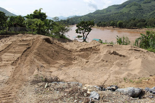 Cát được tập kết thành bãi ven sông Mã. (Ảnh: Hùng Võ/vietnamplus.vn)
